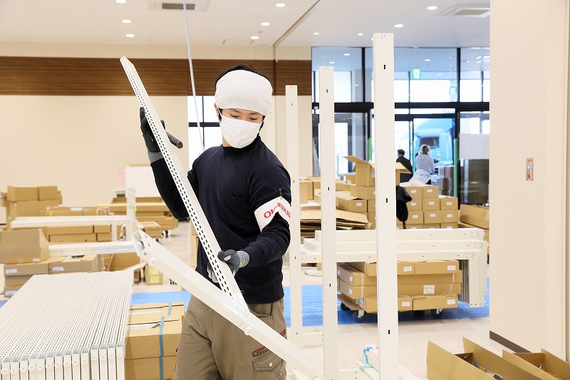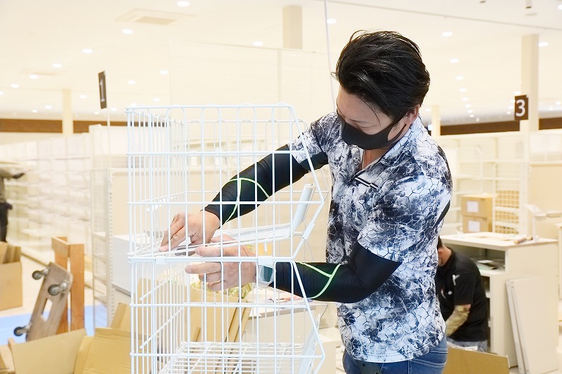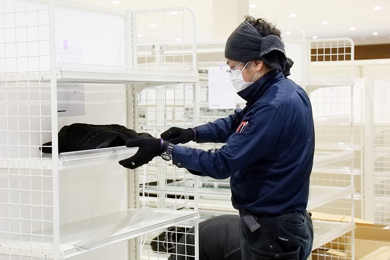 安西総合有限会社では仕事量増加に伴い、現場スタッフを募集しています。皆様がよく目にするお店の陳列棚の設置・レイアウト変更の仕事です。